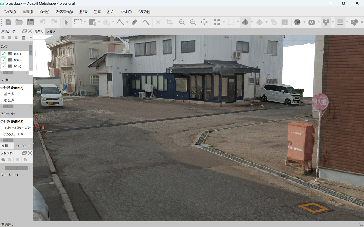 以下の画像は metashapeとRelity ScanそれぞれでOSMO360の動画を解析し表示している様子です。写真のように見えますが3Dテクスチャーモデルです。